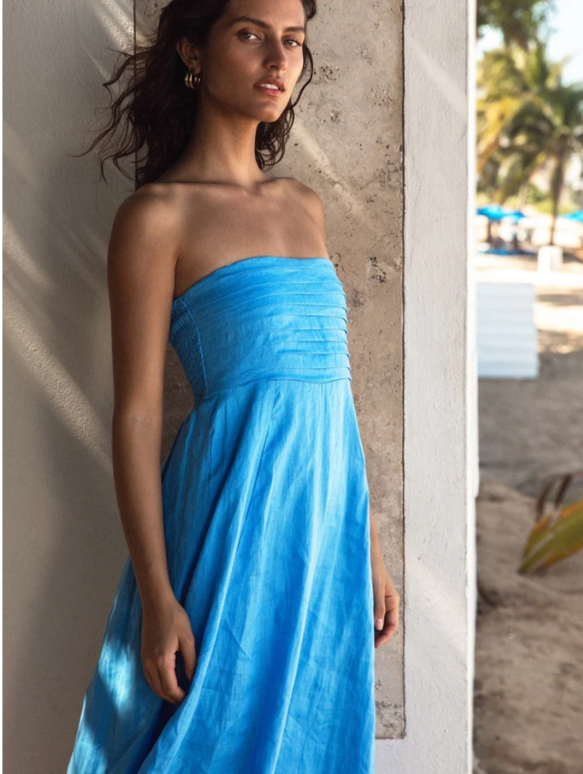 LUSANA TALIA LINEN MIDI DRESS, Size XS